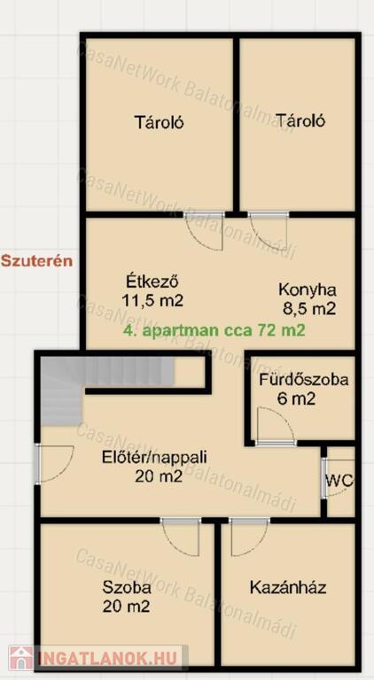 - a szuterén szinten egy 72 m²-es apartman,
