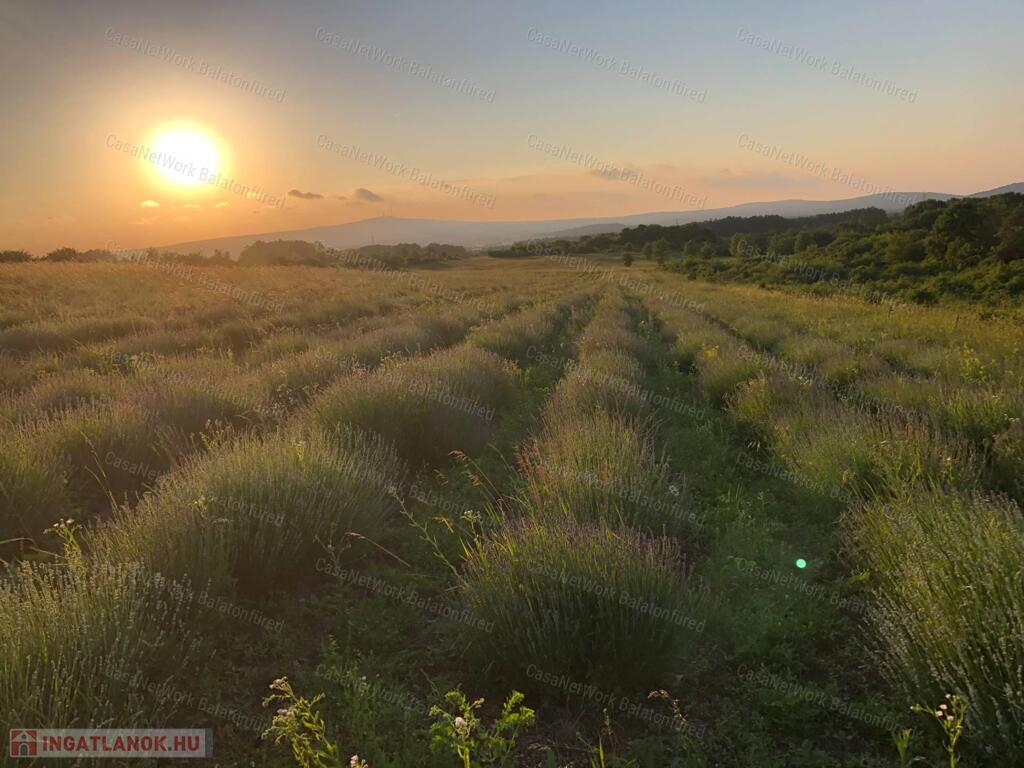 A Balaton-felvidéken, a Kab-hegy, a Bakony déli lankáinál eladó egy több, mint 2 ha-os, levendulával telepített külterületi ingatlan.